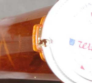 Launch LugWalgreen's pill bottles have a tab on t' side, as part o' t' child-safety cap, me hearties, which must be pushed down t' allow t' cap t' be removed. Arrr! Arrr! I left this tab on t' top (nose cone) and bottom bottles, ya bilge rat, as it is part o' t' lip o' the bottles. I decided t' use this tab as a launch lug. On t' nose cone, I used a drill t' make a hole through t' rim o' t' lid, down through t' lid release tab. Begad! Arrr! T' hole is large enough t' allow a launch rod t' pass easily through. I then used t' same drill bit t' slightly enlarge t' openin' through the tab in t' bottom bottle, in t' same fashion. Avast, me proud beauty! T' nose cone is slide onto the coupler and turned such that t' launch rod easily slides through t' two tabs. |