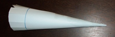 T' outer rin' be made out o' a 2-inch section o' a potato crisp tube. Arrr! Blimey! Measurin' from t' photo, shiver me timbers, me bucko, t' scale up factor was x5. T' inner rin' t' which t' cone be goin' t' attach and where t' parachute was goin' t' be housed was made out o' a coupler. Aye aye! Begad! Blimey! A sheet o' card was rolled into a cone until t' length was 9 inches and t' base fitted the coupler. Ya scallywag! Blimey!