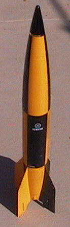 ( Contributed - by Brian Kain) Brief: Scratch 4" V-2. Flies on H through J 38mm motors. The nose has interchangeable weights so the rocket can be properly weighted for any given motor. I use a silk 36" chute I got from AEROCON. Construction: 1- 4" dia LOC body tube 8.5" long. Glassed with 6oz cloth and 30 min epoxy. This rocket has no payload section ...