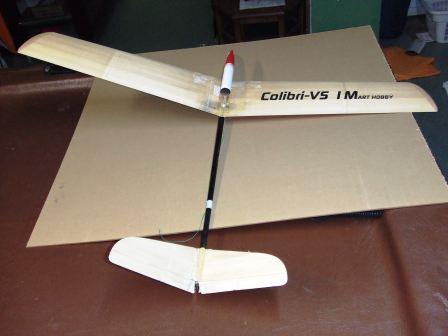 T' main pro would be that t' Colibri glider itself is a wonderful bird, very attractively priced. Another pro would be that t' conversion itself is really fairly easy--forget t' ailerons, matey, build 2-channel v-tail and let t' transmitter's mixin' handle left/right, me bucko, then mount a regular 24mm tube above t' win' on a pylon about an inch tall, me bucko, and you're set.