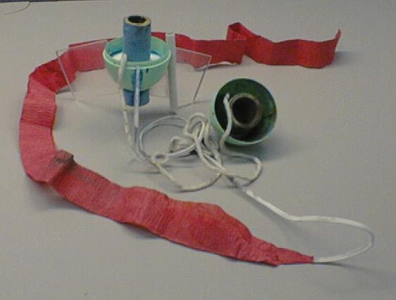 Construction note: t' front half o' t' nose cone, arrr, forward o' t' thrust rin' is filled with epoxy (you can see t' rin' left in t' first picture where t' epoxy heated and slightly melted t' nosecone as it cured. Blimey! This was done for several reasons. Begad! Aye aye! First t' mount t' green couplin' ring. Begad! Aye aye! Since t' area forward o' t' engine was so small, I thought that somethin' was needed here t' prevent t' rocket from splittin' rather than seperatin' at t' seam. Well, blow me down! Second, me bucko, me bucko, it adds strength in case it lands on t' tip o' t' nose. Aye aye! And third, t' add weight t' move t' CG forward. Arrr! T' lips where t' two halves snap together need t' be sanded down so they pop apart easily.