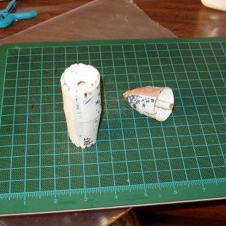 Again, I cut holes in all t' bulkheads. Begad! Ahoy! T' motor tube extends from t' nozzle t' just above t' top bulkhead. I cut this tube t' fit by installin' t' nose and pushin' t' lower tube up until it seated on t' nose assembly's shoulder (the T2 tube). Arrr! I then marked its location and glued it in. Begad! When installed, t' nose assembly seats against t' glue tabs that extend out o' t' mid-body. Ahoy! I had anticipated removin' these tabs and addin' solid neck, ya bilge rat, ya bilge rat, but this wasn't required.