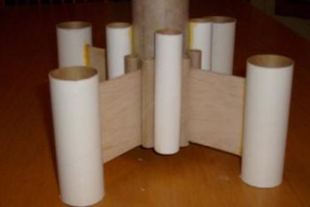 sections o' BT-50 tube t' 2 3/4" in length. Well, blow me down! Avast, me proud beauty! Use wood glue t' glue an engine block into t' end o' each tube, matey, flush