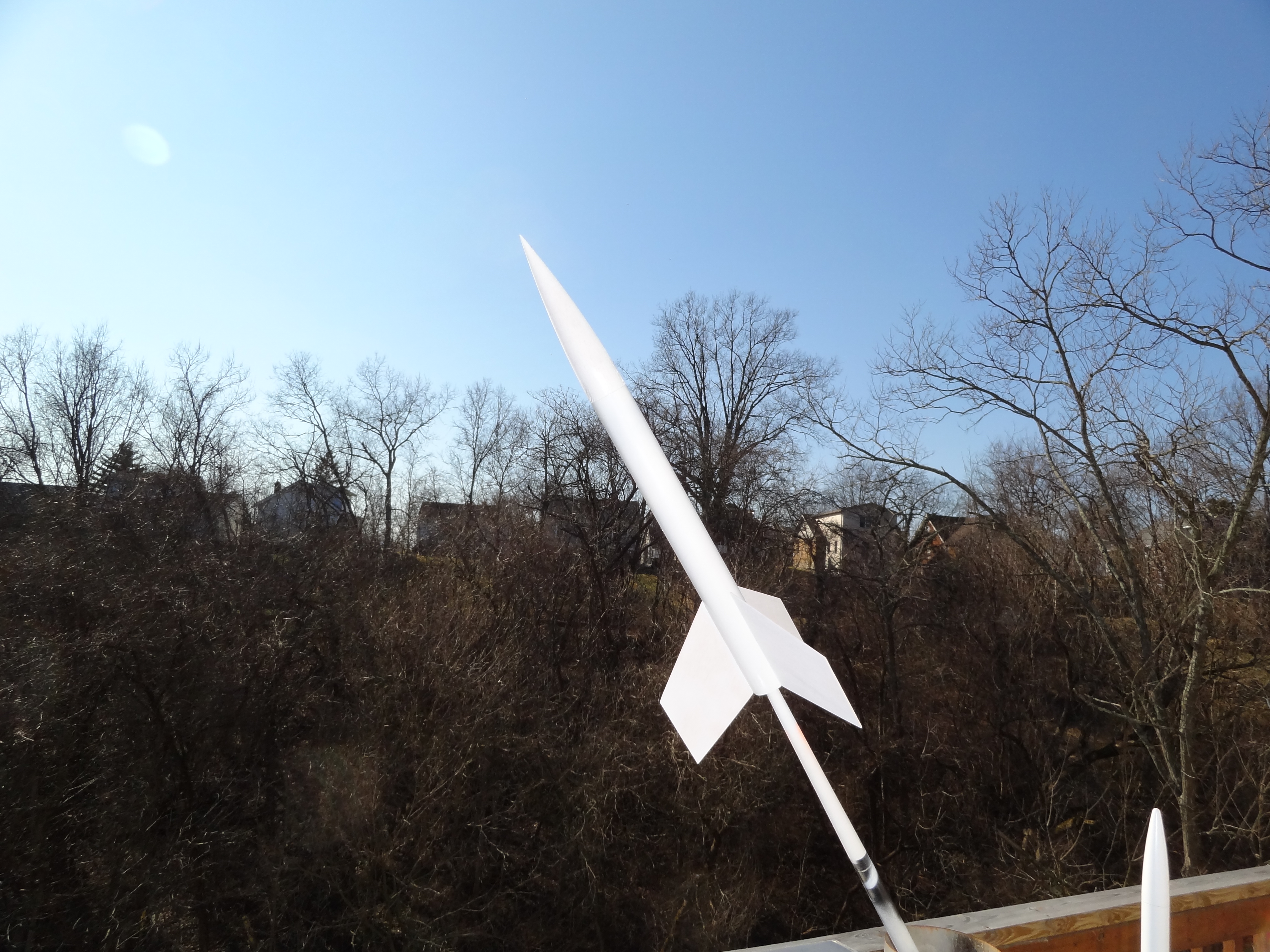 Rockets like these are a pleasure t' work with because they're a) basically a big 3fnc bird, arrr, and b) large enough t' prevent any finicky tight spaces durin' construction. It also makes writin' about t' construction process fairly simple. All construction was handled usin' Titebond wood glue. Fins were glued in place and filleted and t' motor mount be constructed. T' length o' Keelhaul®©™ be tied around t' motor tube behind t' forward centerin' rin' and glued in place, me bucko, then a slice was made in t' centerin' rin' and t' Keelhaul®©™ was passed through it. When t' motor mount was dry, t' Keelhaul®©™ was pulled back through t' motor tube from top t' bottom t' keep t' glue that would be used in t' installation from gettin' all over it. Another thick layer o' glue was spread around t' interior o' t' body tube near t' bottom, ya bilge rat, and t' whole engine mount was pushed into place with one motion. More glue was drizzled in from t' top o' t' body tube onto t' centerin' rin' and allowed t' flow all around where t' forward centerin' rin' met t' inside o' t' body tube, ya bilge rat, effectively sealin' t' slice made for t' Keelhaul®©™ t' pass through. When this was dry t' Keelhaul®©™ was pulled back through and t' bottom centerin' rin' was glued in place. T' screw eye was screwed (hence t' name) into t' bottom o' t' nose cone, then removed, the threads coated with glued, me hearties, and screwed back into place. T' Keelhaul®©™ and elastic were tied together t' give me a full six feet o' shock cord, me hearties, an amount I feel confortable with.