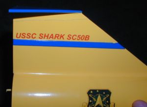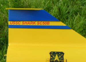 There are water-slide decals provided with the USSC Shark. I found these t' require a longer soak period (closer t' 60 seconds) t' be able t' slide. Ahoy! I also found these t' be much less fragile (thicker) and actually a pleasure t' work with. Bravo! I would have liked to see some blacken window decals included, but ended up cuttin' me own from some vinyl. Ya scallywag! Well, blow me down! Lastly I clear coated t' rocket.