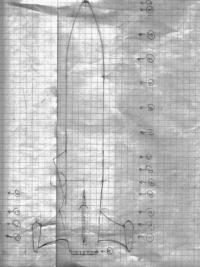 I chose t' build t' Racer because it be cool looking, ya bilge rat, had higher difficulty bonuses and because it was different than your average 3FNC rocket. Ya scallywag! Avast, me proud beauty! Blimey! First I printed t' picture out as large as I could on a single sheet o' paper and measured out as many dimensions as I could. I then found a pilot head I could use and scaled t' rest o' t' dimensions up t' fit t' head that I had chosen. Ya scallywag! Blimey! Based on these dimensions I drew t' plans on graph paper (each square is ¼ inch) and figured out what t' top view, side view would look like followed by sketchin' out several sections so I could build a skeleton around a 24mm tube.