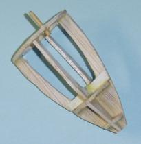 Next I cut pieces from cardstock t' estimate shapes and used those as templates t' cut 1/32" balsa. Each piece o' balsa be papered and then glued and clamped into place.
