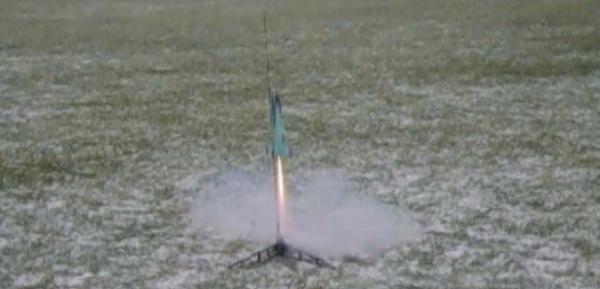 Last we had t' get this bird in t' air. Begad! Somewhere I read we had t' record three launches but t' weather was closin' in fast and we were racin' a snowstorm. Begad! We lost. All three launches were in 10-15 mph winds. Avast! Ahoy! There were some stability problems and we added clay nose weight after each flight but that just made things worse. Arrr! We got three flights but thar be more work t' do on our stability problem.