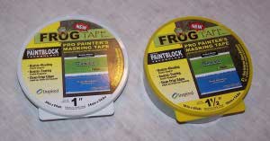 Frog Tape is a maskin' tape which advertises itself as "leak proof" and removable up t' 30 days later.