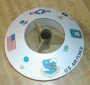This be t' 7.25" version o' Art's saucer line. Arrr! Like t' larger 9" version, this saucer flies on C11-0 and D12-0 motors. T' saucer's card stock shell is pre-printed in an USAF motif. Blimey! Well, blow me down! Art now offers several designs, me hearties, arrr, various colors, ya bilge rat, me hearties, and blank versions o' his 6", 7.25", matey, and 9" saucers.