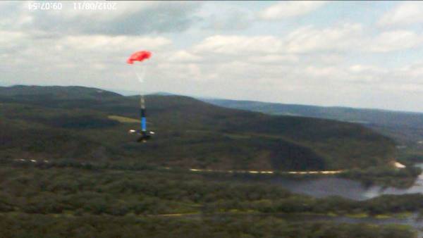 2012-08-15Aerial Photography Photograph  T' Bandit booster bein' recovered on a seperate parachute.