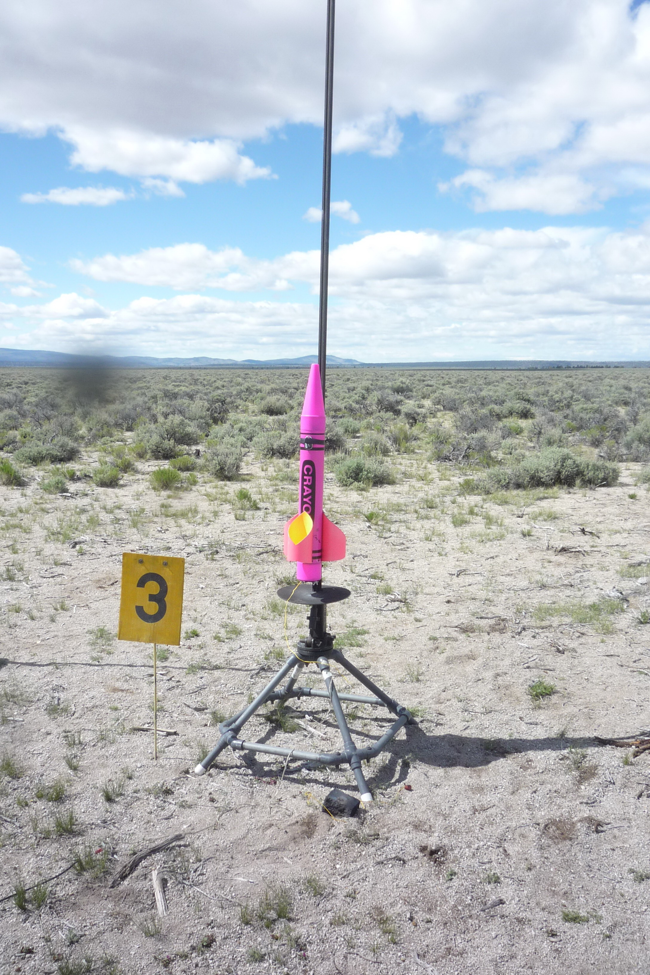 Crayon rocket, 3 tube fins. Designed by me daughter and made for her first HPR event.