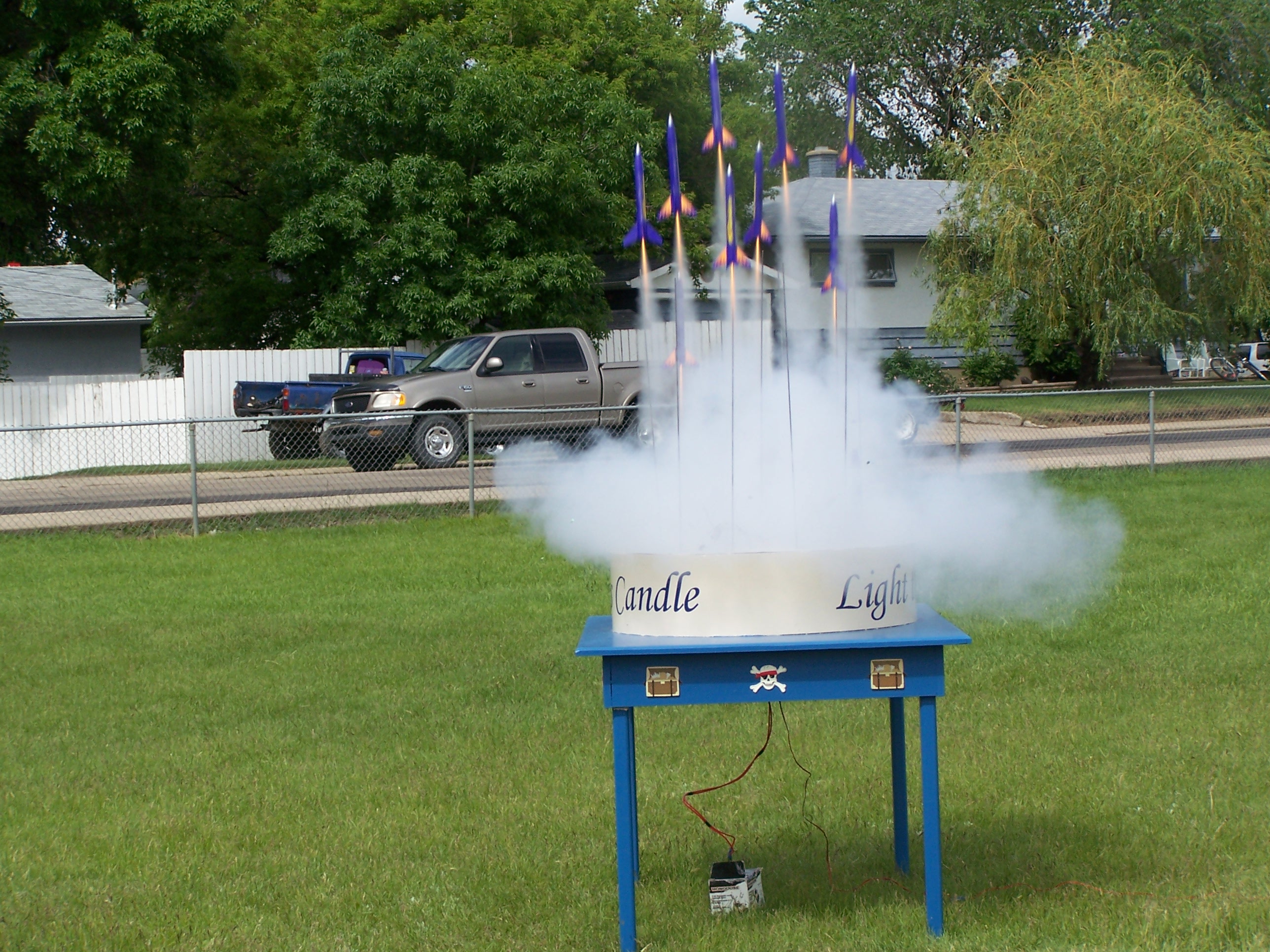This is a launch pad that I built for me son's birthday party. It simultaniously launched eleven A motor rockets.
