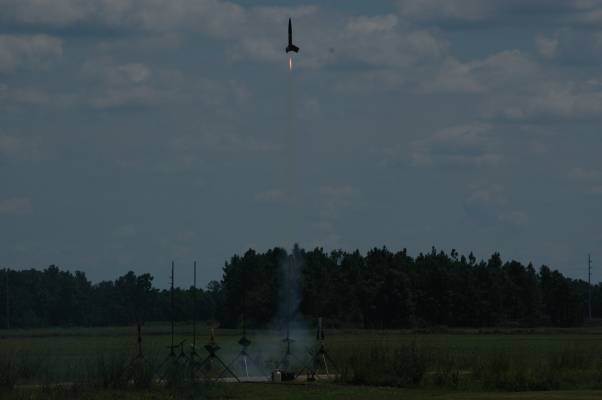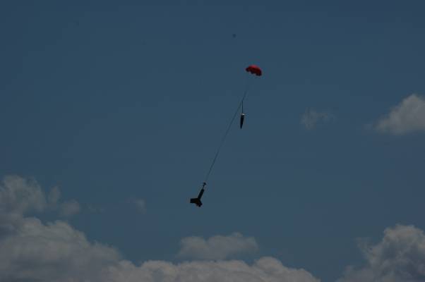 Great fight on a G250! T' wind was very still, this Rocket went straight up t' around 700’, did a tail slide back a long way and landed a 100’ from t' pad. T' G250 and light weight o' t' RedMax let it move off t' pad in a blink o' an eye. Didn’t curve, twist or do anythin' odd. Begad!