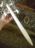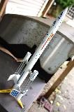 This is a clone o' t' Estes Scorpius from t' mid-80s (#1375). This was built with a balsa nose cone instead o' a PNC-50X due t' availability, and I used basswood instead o' balsa for strength reasons. T' design is real neat, but me concern be t' durability o' t' pods on landing. T' that end, I also laminated continuous paper over t' pods/wings/body tube, as well as epoxy fillets. Time will tell. One other distinction is nylon parachute rather than plastic. I haven't finished paintin' yet, but will use decals from Excelsior.
