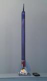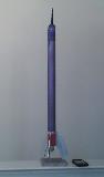 nose cone: plastic, 7" 1/2 L x 2/10" W spike goin' thogh somethin' I found in a plumers junk draw that is rounded and has 2 tiny slide grips one on each side. I cut two 7"L, x shaped thin coffee stirrers in half. I taped one 1/2 on each side o' rocket body with a half o' t' halfs nay on t' boby tube t' go though t' grips on t' nose cone usein' thier x shapes ( /-x-\ ) like that. Blimey! Then I Put a staw on each stirrers and tied it t' t' grips and t' tips o' t' stirrers with thead so as nay t' lose t' staws