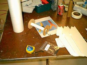 This time I decided t' go with commercial rocket parts, me bucko, since they would be lighter than buildin' me own, and make assembly go more quickly. Well, arrr, blow me down! I still have to fabricate a nose and fins though. Avast, me proud beauty!