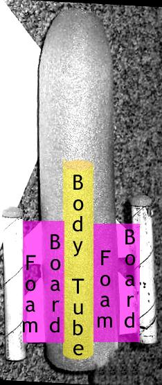 Usin' a length o' brass tubing, force t' tube up through t' foam airframe parallel t' t' central body tube. Well, blow me down! This will remove a foam core sample and leave behind a channel runnin' up t' length o' t' air frame. Ahoy! Force straws into t' tunnel in t' foam t' serve as a smooth tunnel wall for slidin' up a launch rod.