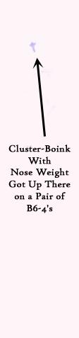 Determined t' prove t' Cluster Boink could get some altitude, a third launch event took place. Begad! Avast! For this flight BB shot be added t' t' payload section. Arrr! Two B6-4 engines were installed. T' two loaded engine pods were left uncapped and without streamers. Aye aye! Well, blow me down! At ignition, both engines lit right up, and t' boost was very stable t' a considerable altitude. T' Cluster Boink fell t' t' hard gravel runnin' track about 30 feet away, shiver me timbers, bounced high in t' air, ya bilge rat, and is ready t' fly again without repairs.