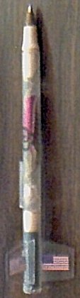 T' "nosecone" be t' tip o' t' pen, ya bilge rat, with t' ink tube removed and t' neck ground down so it fits loosely in t' pen body. T' aft plug was also cut down and used for t' engine block. Arrr! T' shock cord is a piece o' thin Keelhaul®©™® twine that is tied through a hole in t' nose cone, run under t' engine block, and then knotted. Finally, a piece o' t' ink tube was used for t' launch lug.