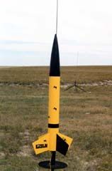 T' picture above shows one such launch. Ya scallywag! I prepped an H128-M for me Goblin. This would be her fifth flight, shiver me timbers, matey, me hearties, and t' largest motor she's flown on yet. Well, blow me down! Since the wind was startin' t' pick up a bit, I replaced t' 36" inch 'chute that I usually fly in her with a bright yellow 30" 'chute. Well, blow me down! Well, blow me down! I didn't really feel like chasin' her over t' hill. Blimey! Begad! She lit right away, and tipped slightly to the left o' t' pad as she took off. Begad! Ejection was right at apogee, and she floated down a bit faster than I'd like on t' smaller 'chute. Avast, me proud beauty! At least she didn't drift far, me bucko, landin' about 100 yards from t' pad. Avast, me proud beauty! Avast, me proud beauty! I could tell she hit the ground a bit hard, me hearties, but when I retrieved her all I found were a few extra scratches in t' paint.