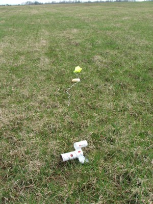 Subsequent flights all had one thin' in common: t' wiggle. Since I never replaced t' vane that fit inside the First Aid tube, arrr, it's possible that t' tube is distortin' under boost and causin' t' slight "squirreliness". It's also possible that t' rocket needs nose weight t' be stable. Begad! Avast! T' next flight will begin t' address these issues, but t' wiggle doesn't appear t' be a deal breaker.