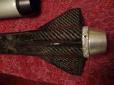 Senza Confini is a 54mm maximum performance rocket designed around t' 54/2800 case from Aerotech, for t' K250W. Well, blow me down! It is only 31 inches in length. It features a SUPERSHORT design, ya bilge rat, Tower-launched design, G12 Fillament wound nose cone, a T1000G Fillament wound Carbon fiber airframe, matey, Dragon plate quasi Isotropic Carbon fiber fins, matey, a custom designed and milled 6061-T6 tailcone, Dual deploy, and an automotive paint job.