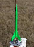 This is a replica o' t' rocket that started it all for me. I was in t' 5th grade in 1973, when I found a lime green Centuri, ya bilge rat, Starfire in me grandmother's tree. Immediately I was HOOKED! I have been designing, building, and launchin' rockets on and off ever since. I don't know whatever happened t' t' original rocket I found in t' tree that day. I guess at that age, me hearties, I didn't realize it's significance. But this one be t' same exact color o' that original Starfire, and it always serves t' remind me o' that imaginative young kid that wanted t' be an astronaut, ya bilge rat, and just loved launchin' rockets! T' Starfire - as simple as it is - will always be me favorite rocket.