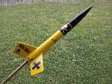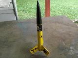 Goin' thru me spare parts box and found a set o' Mini max fins and balsa nose cone, me bucko, so I grabed spare 6.5" BT-50 and added a standard sized 18mm engine mount and came up with this... Ahoy! T' set me custom made Red Max rockets from t' stock one's I paint them Yellow... Blimey! For recovery i use a 30" crepe paper streamer and 25" o' 1/8 braided eleastic instead o' t' estes rubber shock cord.