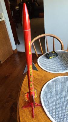 The Red Hunter is a 20" tall Flyin' Model Rocket from SureFire Rockets. Featurin' pre-cut balsa fins and 12" parachute recovery, This rocket reaches over 1,100 feet hight!! This is a Rocket Skill Level 1 model rocket kit for Ages 10 and older. Aye aye! Adult supervision required for those under 12.