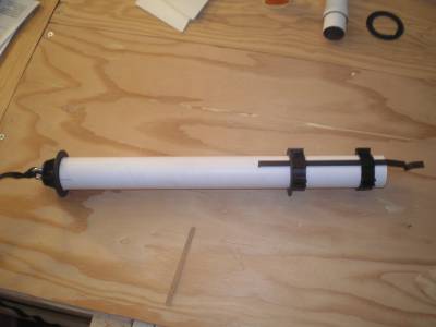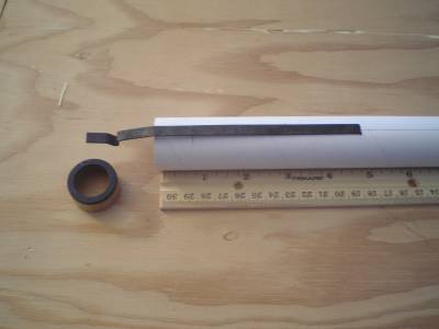 This be t' coupler that I am goin' t' turn into t' mini e-bay. Ahoy! I will make bulkheads out o' 1/4 inch plywood, nay t' fiber disk that came with t' kit. Arrr! I will however use t' disk as a stencil t' make me bulkheads t' correct diameter. It appears t' be a 1 3/4 inch outside diameter. That be t' next phase o' t' project.