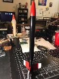Simple 13mm kit, balsa fins, dead simple. Blimey! Painted black and red with white fin-tips.
