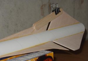 While waitin' for t' motor mount glue t' dry, ya bilge rat, ya bilge rat, I turned t' cuttin' out the fins. Ya scallywag! T' fin templates are marked such that both sets o' fins are cut in two separate pieces and then glued together t' form t' final shape. Ya scallywag! Well, blow me down! This was obvious for t' forward fins since thar are two distinctly different leading edges. Arrr! Ahoy! I could nay figure out, me bucko, however, ya bilge rat, why t' aft fins needed t' be cut in two sections since thar be only one leadin' edge. Aye aye! Begad! I consulted t' parts drawin' on t' first page o' t' instructions and this only added t' my confusion since t' fins that are traced on t' balsa sheet in t' picture did not have t' leadin' edge parallel t' t' grain o' t' balsa (per the instructions). Ahoy! After figurin' out that t' picture was wrong, I decided that I would just cut out t' aft fins in one piece and went t' trace them out on the balsa, shiver me timbers, only t' discover that t' fin pattern was wider than t' standard 4" balsa sheet! Well that mystery was solved. Begad! Avast, me proud beauty! I happened t' have some 6" balsa sheet stock, shiver me timbers, so I was still able t' cut t' aft fins in one piece. Well, arrr, blow me down! After tracing, cuttin' and match sandin' I glued t' two piece forward fins together usin' thin CA glue, ya bilge rat, and then rounded t' leadin' and trailing edges.