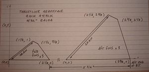 attached even with t' aft end o' t' body tube and t' forward fins were attached 5.75" from t' aft and o' the