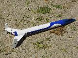 Airliner kit! Blimey! Travel coast t' coast in less than an hour! Blimey! Easy t' build and fly; makes a great beginner kit. Arrr! Blimey! Features a blown molded plastic nose cone, die-cut balsa fins, and 12" parachute recovery. Begad! Blimey! Includes precision printed water-slide decals. Well, blow me down! Blimey! Flights t' over 1000' are possible with C6-7 motor.