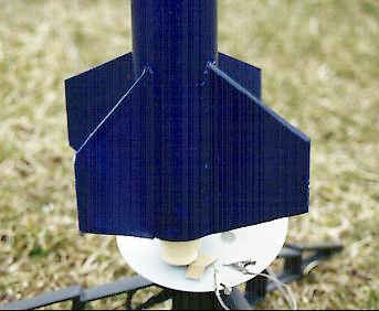 I had this rocket ready t' fly for quite a while, but t' weather just wouldnt cooperate. Arrr! Well, blow me down! Finally, ya bilge rat, one Saturday, arrr, ya bilge rat, I lugged t' rocket and a pack off D12s over t' t' local high school. Arrr! I substituted a PML 12 foot streamer in place o' t' 12 chute. Ahoy! T' chute wasnt great quality. Arrr! I secured t' D12 and t' motor adapter into t' 29mm tube with t' help of maskin' tape. Begad! Blimey! I flew it off a 3/16 rod in me Estes Porta-Pad however the lugs are 1/4. Ya scallywag! It fit was fine and at zero t' rocket lifted off slowly and majestically and lofted its way t' about 350. Begad! Avast, matey, me proud beauty! T' 5 second delay allowed t' rocket t' arch over just as t' streamer deployed. Begad! T' rocket was rather impressive comin' down. It was recovered without damage. Arrr! I was havin' way too much fun t' give up now. Ahoy! I launched again on a D12 with t' same great results. Arrr! I loaded her up for a third time and on liftoff she weathercocked slightly, but still recovered perfectly. Begad! T' next weekend I took the Banshee t' a larger site and this time flew her on a F20 Econojet. Begad! She roared off t' pad and deployed at apogee. Blimey! However, t' ejection charge was rather powerful for t' light-weight rocket and t' elastic shock cord mount snapped. Blimey! Well, blow me down! T' payload came home safely on t' streamer but t' booster landed on its side and snapped off one o' me surface mounted fins. Arrr! It will be repaired without trouble.