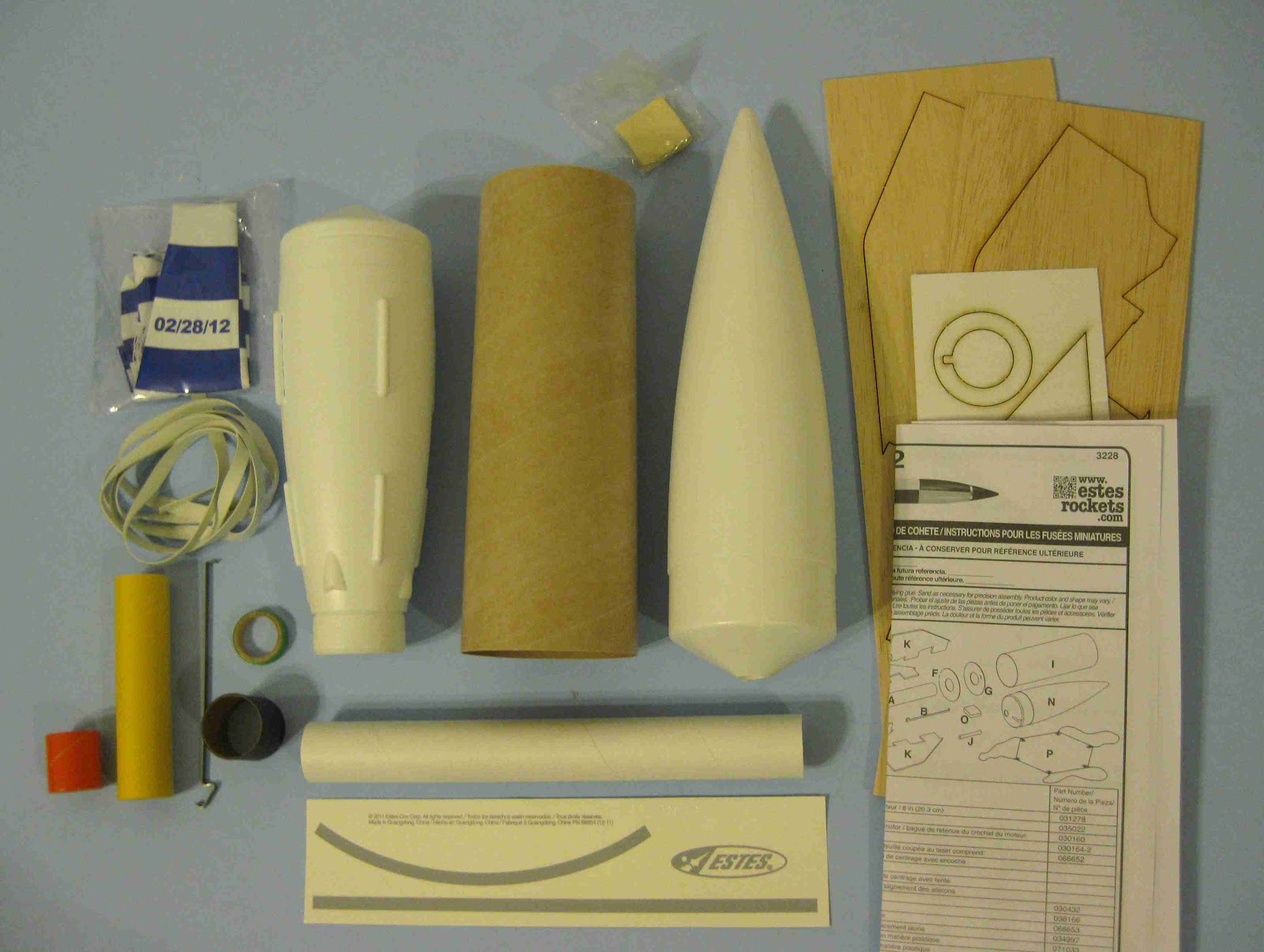 Here's all the parts from the new re-release of the Estes V2 kit, #3228. The model is designed for D12-3, E9-4 and E9-6 engines. The nose cone and tail cone are blow molded plastic. A premade 18" ... [Read More]