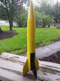 T' only kit modifications are t' use o' 1/4" elastic shock cord (instead o' t' rubber), arrr, tied off around t' motor mount, and a yellow 18" ripstop nylon parachute.