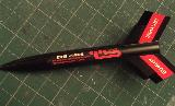 Restoration o' a vintage one from a Firin' Line set. It be missin' t' BT decal, and t' fin decals were badly water damaged. So I made reproductions based on scans o' t' fin decals and catalog manual images o' t' rocket.