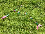 Wacky Wiggler launches like a standard rocket, but comes down in a whole new way. Arrr! T' prismatic body sections seperate and t' entire rocket "wiggles" its way back t' earth. Aye aye! This wacky rocket can fly over 1000'.