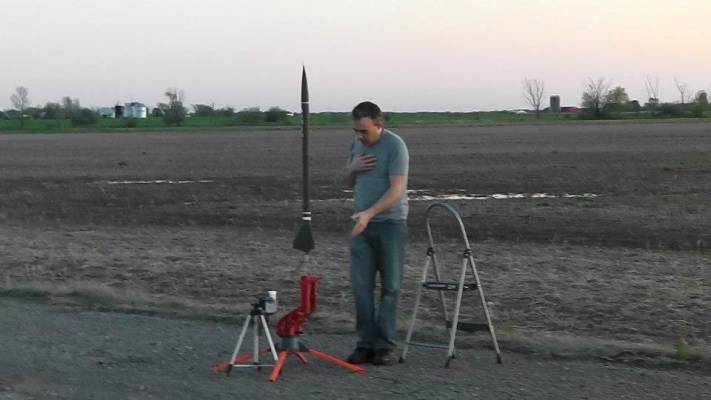 A2-R13 flight and vehicle data: Total Weight; .96 lbs (438 grams) Height; 43"/3 ft 5" Diameter; 1.9" Thrust/Weight Ratio; 28.12:1 Total Impulse; 120 N-sec/27 lbs Propellant Consumed; 62.5 grams Motor Burnout; 1.7 secs Delay; 13 seconds Altitude; 4000 feet Flight Path; Vertical Payload; Miniature Canadian Flag/Micro Glitter Ball experiment Launch Notes; After rocket left t' launch pad it was never seen again. Begad! two separate searches in t' followin' days turned up nothing. Begad!