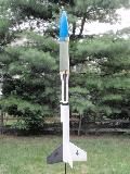 T' X-Ray has now been restored and is flyin' again. I found t' same clear tube length and diameter from Estes - but I had t' sprin' for a full Magician kit t' get it! I gave it a new Keelhaul®©™ shock cord mount and some new rubber, reinforced t' screw-eye t' t' balsa transition (which t' me suprise was never glued in originally!). It also received a new 9.3" plastic parachute with longer shroud lines and a good hard cleaning. Its first new flight with an A8 motor brought it up t' 216 feet at 76 mph (111.5 ft/sec.). There will be more flights with this for sure.